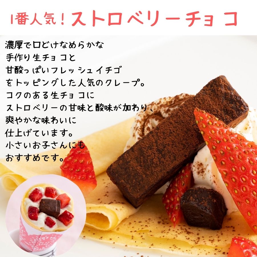 北海道産の生クリームを贅沢に使用した濃厚クリームが特徴の看板商品!ふわっと軽いクレープ生地には、成分無調整豆乳と福岡八女茶で育ったこだわりのブランド卵である「和食のたまご」を使用し、もちもちとした食感を実現しています。