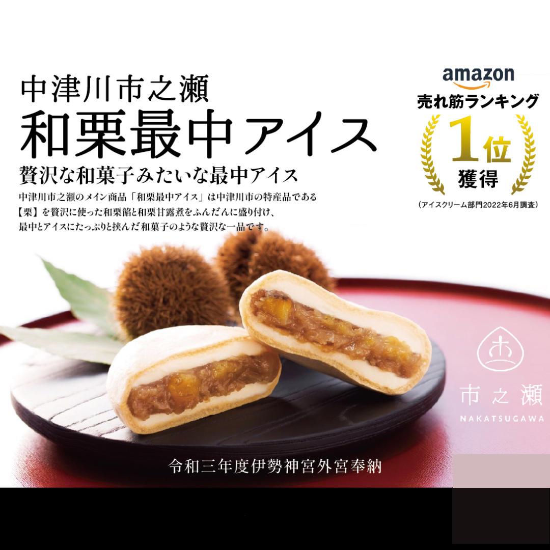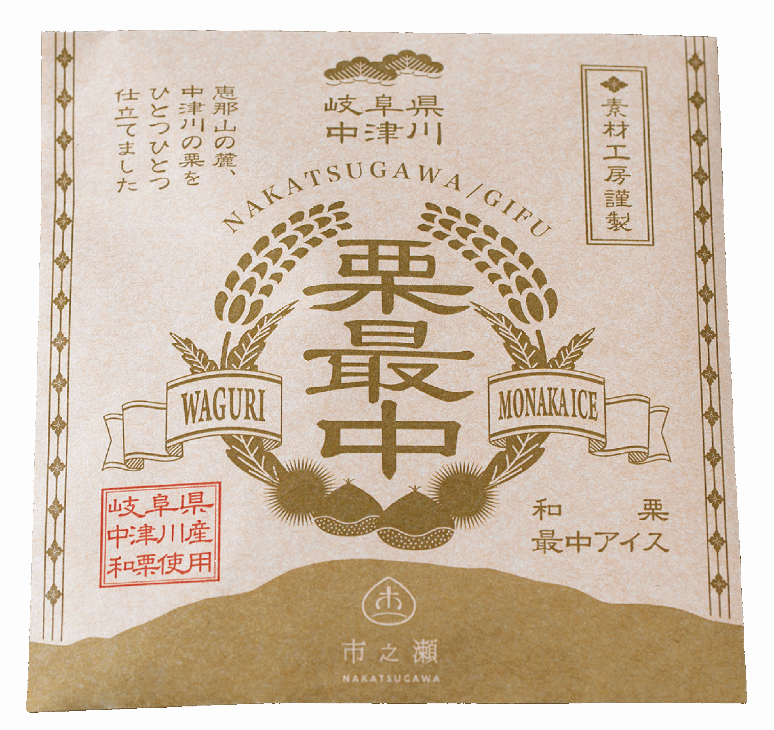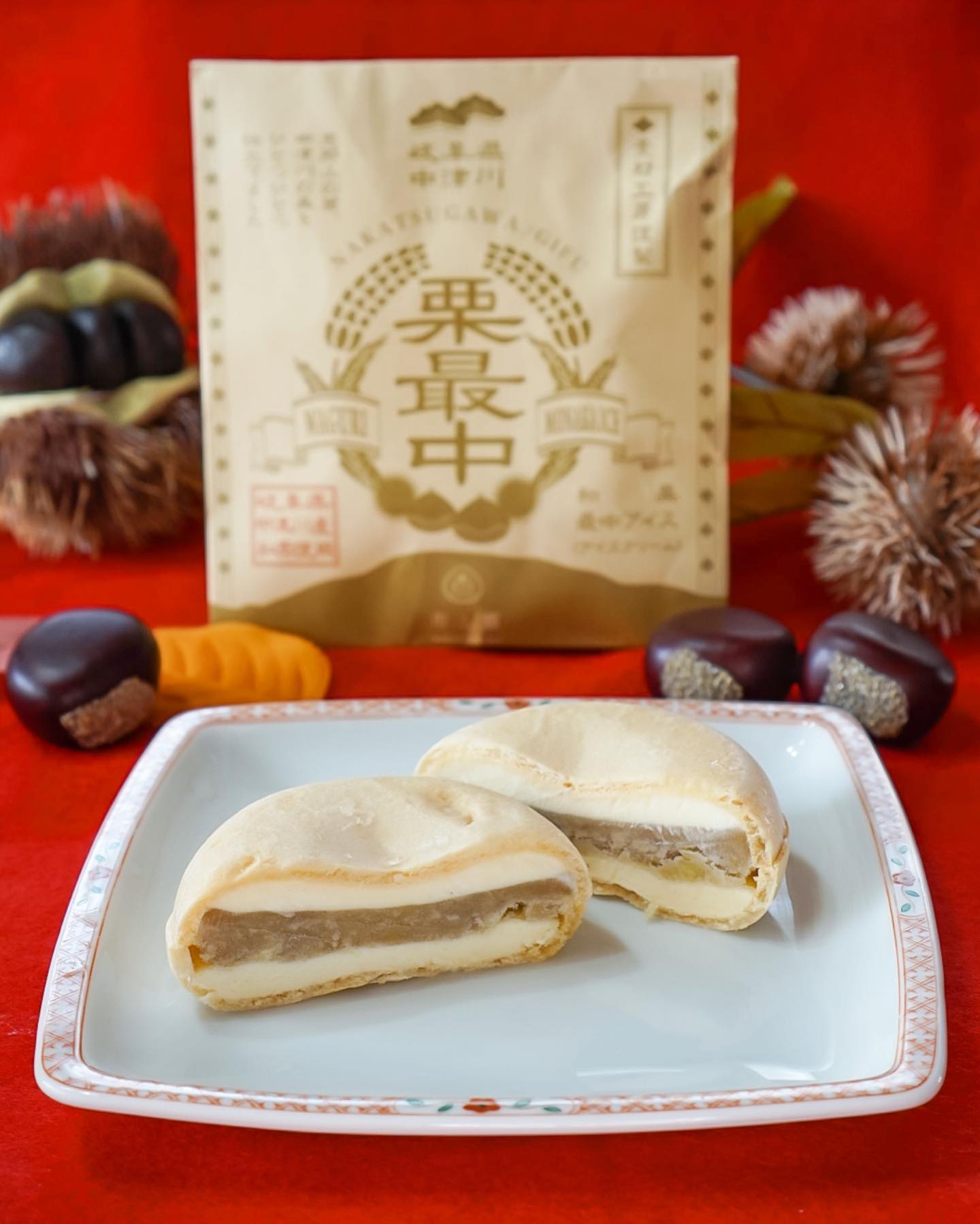 特製栗餡は、特産品である岐阜県中津川産の栗を使用し、味にムラが出るのを防ぐため少量ずつ丁寧に炊いています。栗の風味、食感を活かすために甘露煮・粗栗・栗粉を用い て作られため。「素材の良さを、、、」という信念のもと開発された最中アイスを是非堪能してください。一口食べれば感動間違いないです。