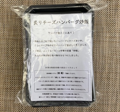 炙りチーズ、ハンバーグ、炒飯 みんな大好きな食べ物をひとつにしました。急速凍結してます。レンジでチンするだけです。社員食堂やマンションなどの冷凍自動販売機に適した商品です