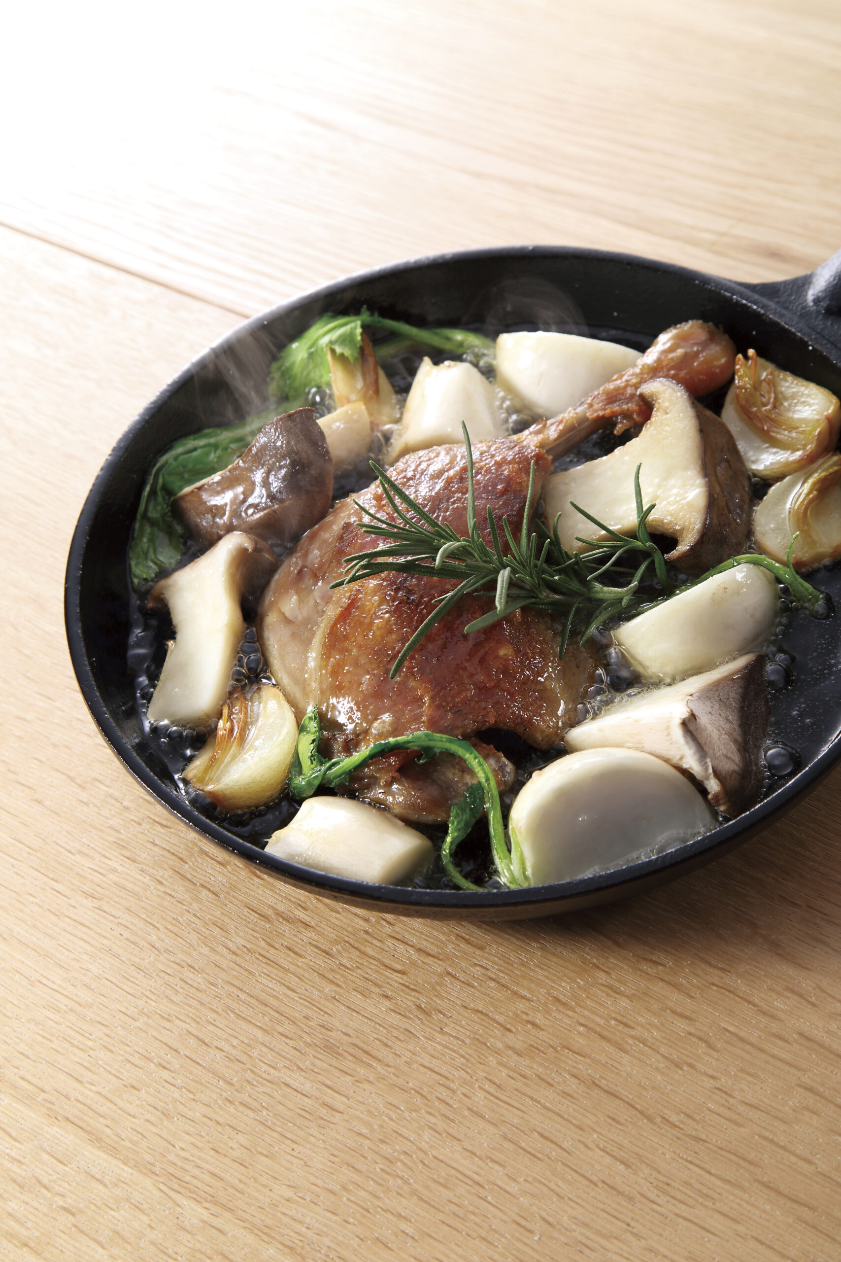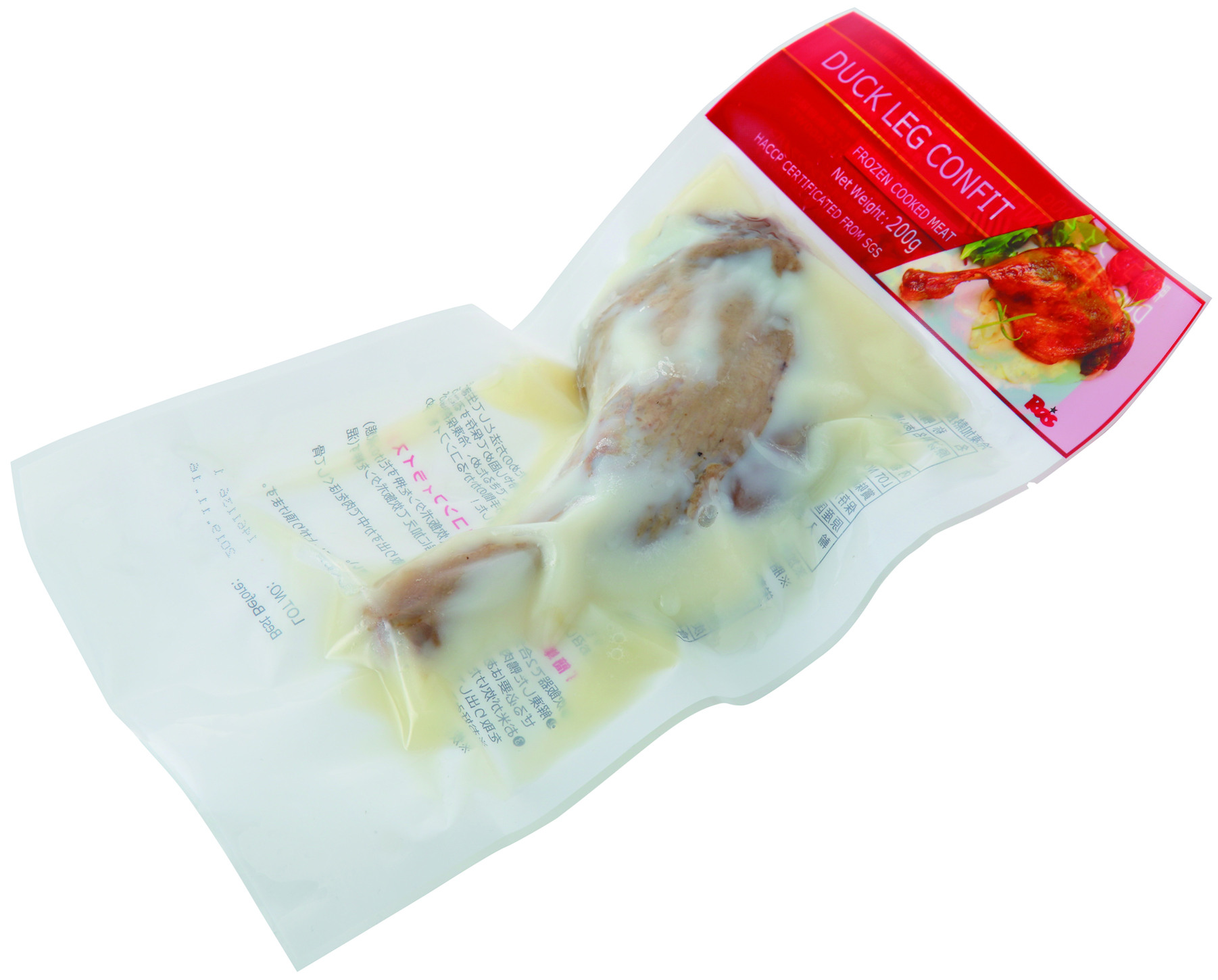 パリッと焼けた皮!ほどけるように柔らかなお肉!溢れ出すうまみたっぷりの肉汁!!近年、ビストロやカフェ、ワインバーでも人気メニューのコンフィですがコンフィは低温の油の中でじっくり加熱する必要があるので実際にお店で仕込むのには手間も時間もかかります。そこで個別包装・温めるだけの便利なコンフィを作りました。本品は「鴨」のもも肉をコンフィした後、1ピースずつパッキングしています。必要な分だけ調理できるのでロスがありません。味付けにきつい香辛料などは使用せず家庭にもあるような基本的な調味料を使用して日本人が好むやさしい味に仕上げています。鴨本来の独特のうまみと香りをご堪能ください。1ピース200gで1人前にちょうど良く、メイン料理としてはもちろん付け合わせをプラスすることで、数人で取り分けるプレートメニューにも使えます。湯煎やレンジ加熱(器にあける)だけでもお召し上がりいただけますがひと手間かけて皮面をパリッと焼くことで、いっそう香りがたち食欲をそそります。